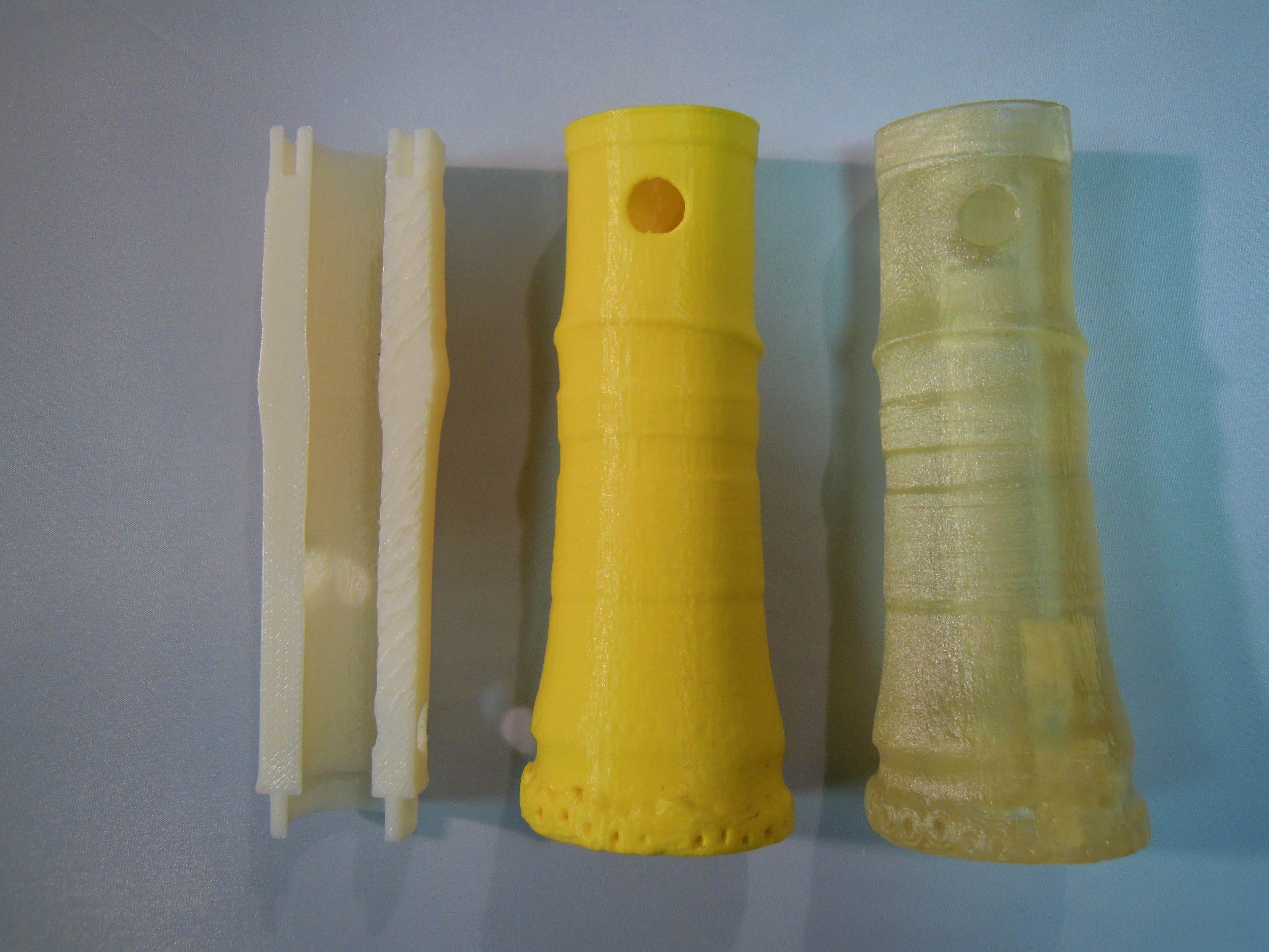 3Dプリンタの材料としては、最近プラスチックに別の素材を練りこんだ材料が発売されている。木材を練りこんだ材料もあるため、こういった材料を使うことによる効果も期待できる。