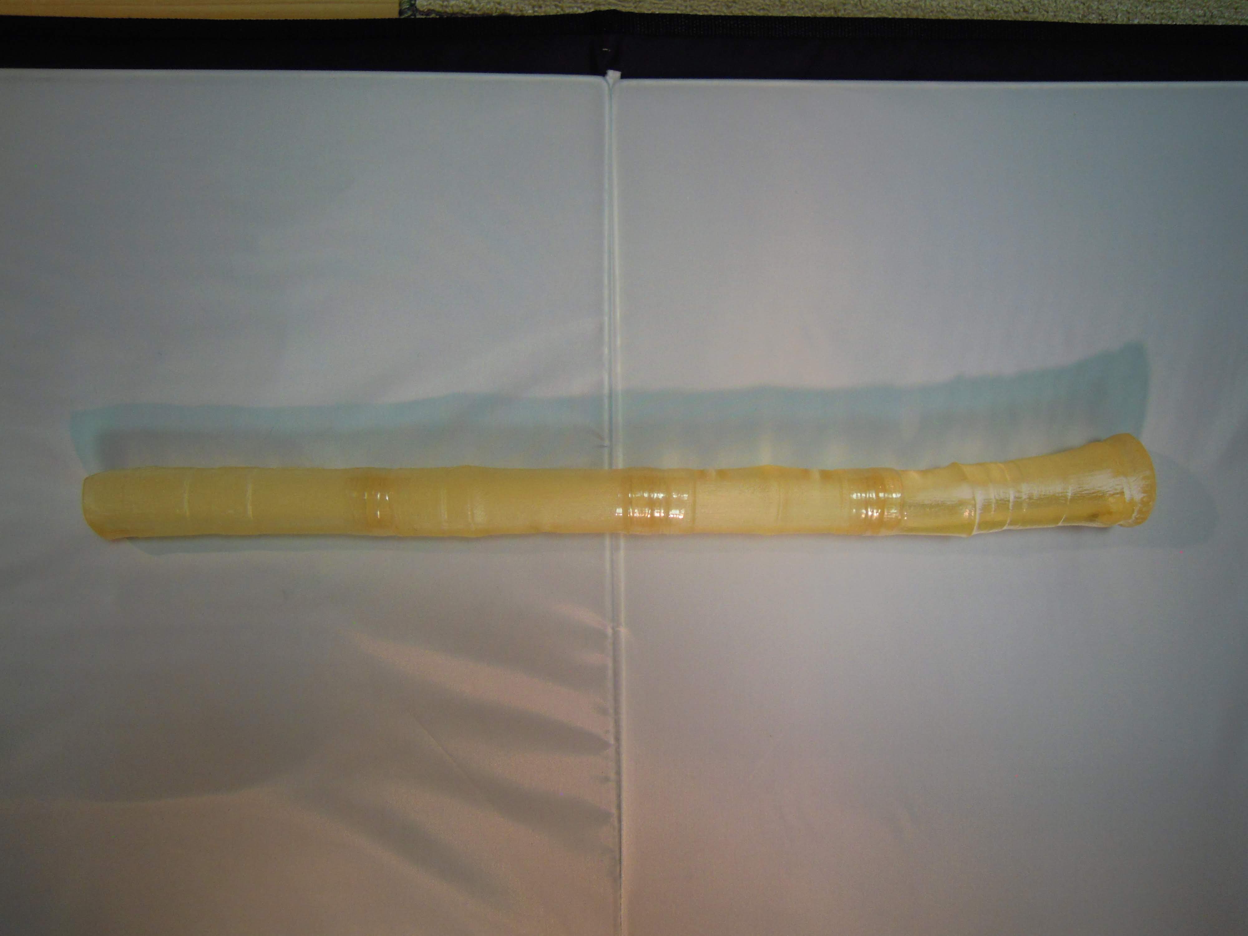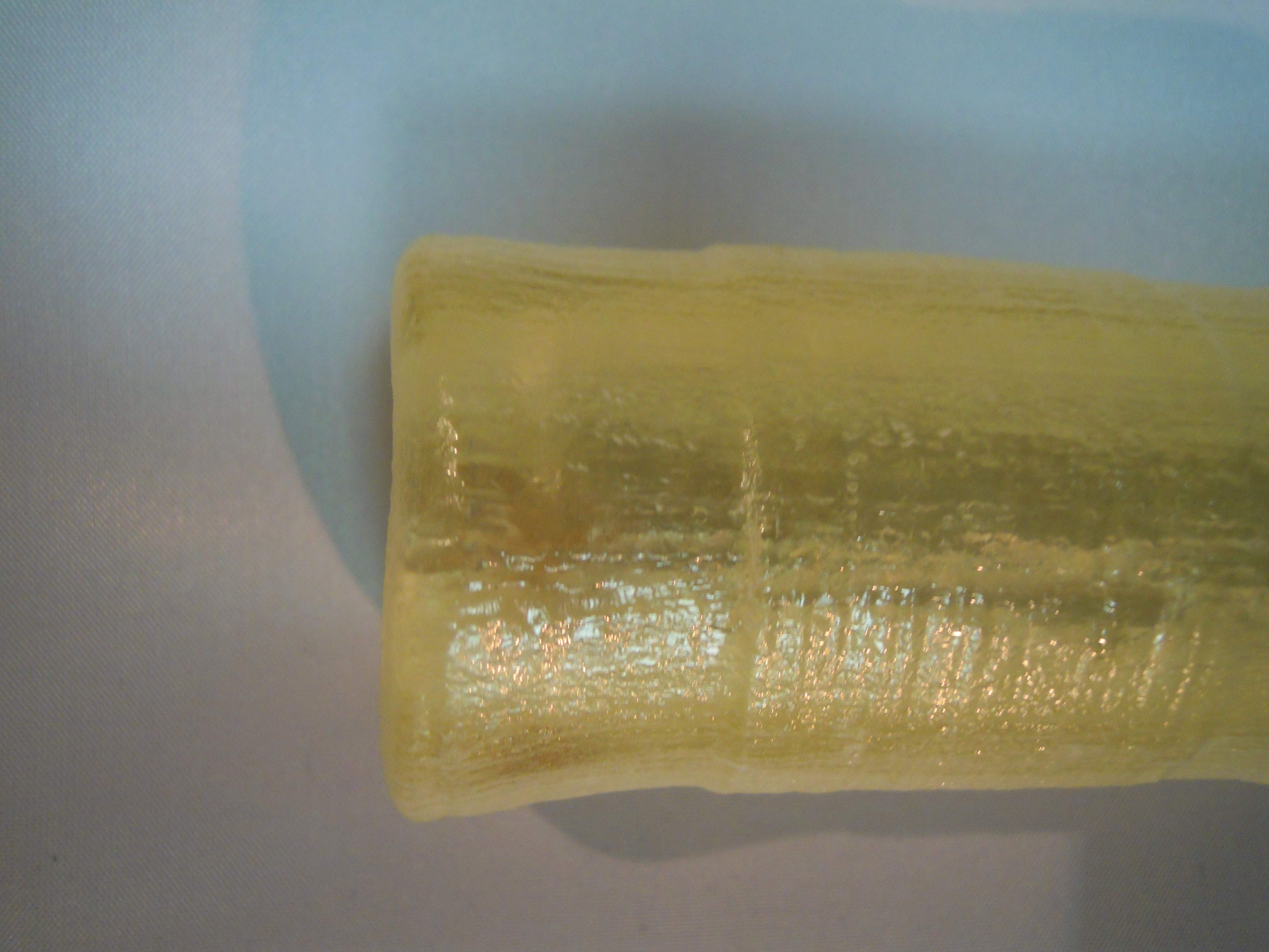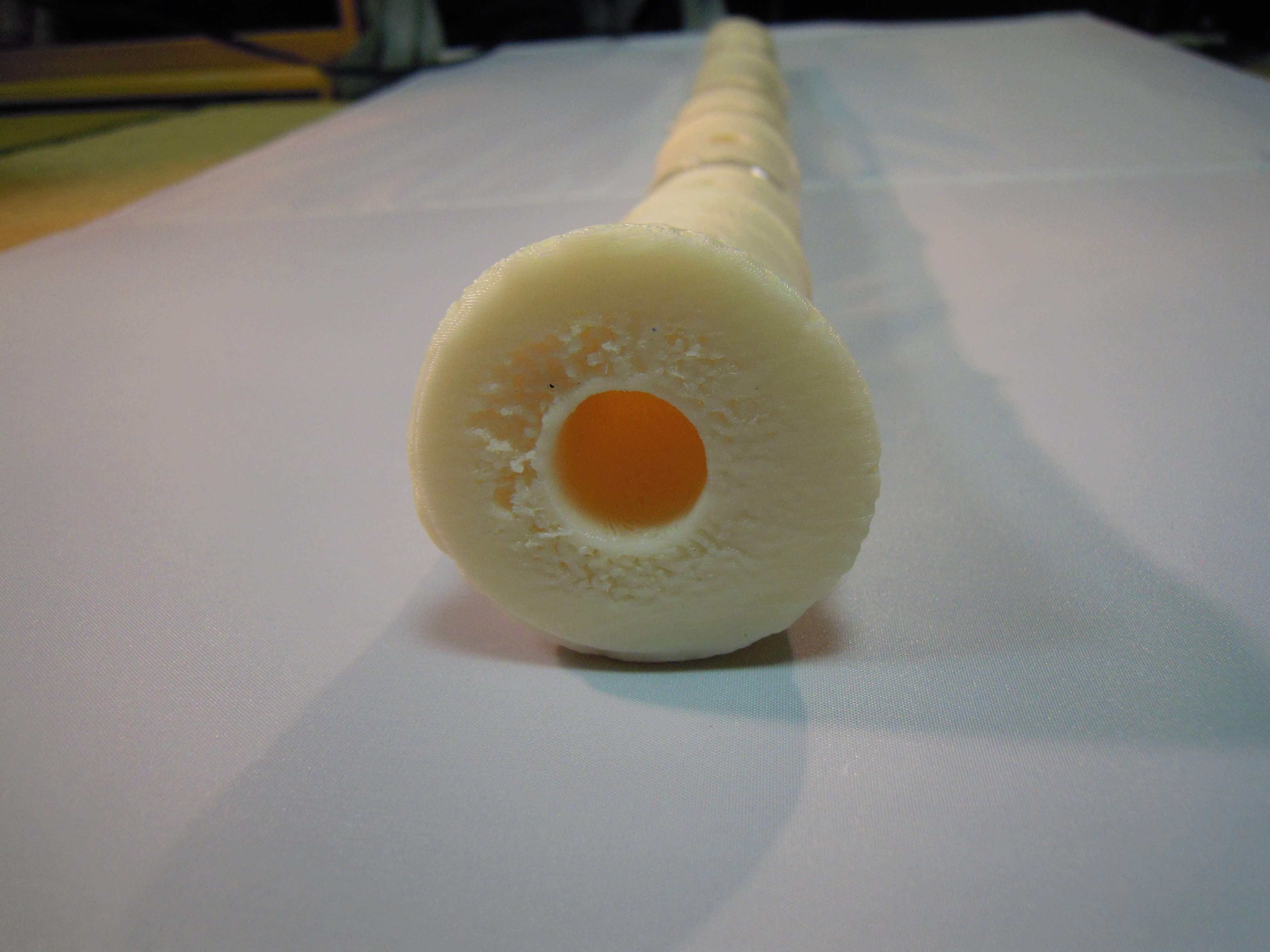 左から (1)「PJP方式 密度30%」(2)「PJP方式 密度50%」(3)「PJP方式 密度100%」(4)「インクジェット方式」(5)「PJP方式(管壁厚み1mmの中空構造)」(6)「FDM方式」