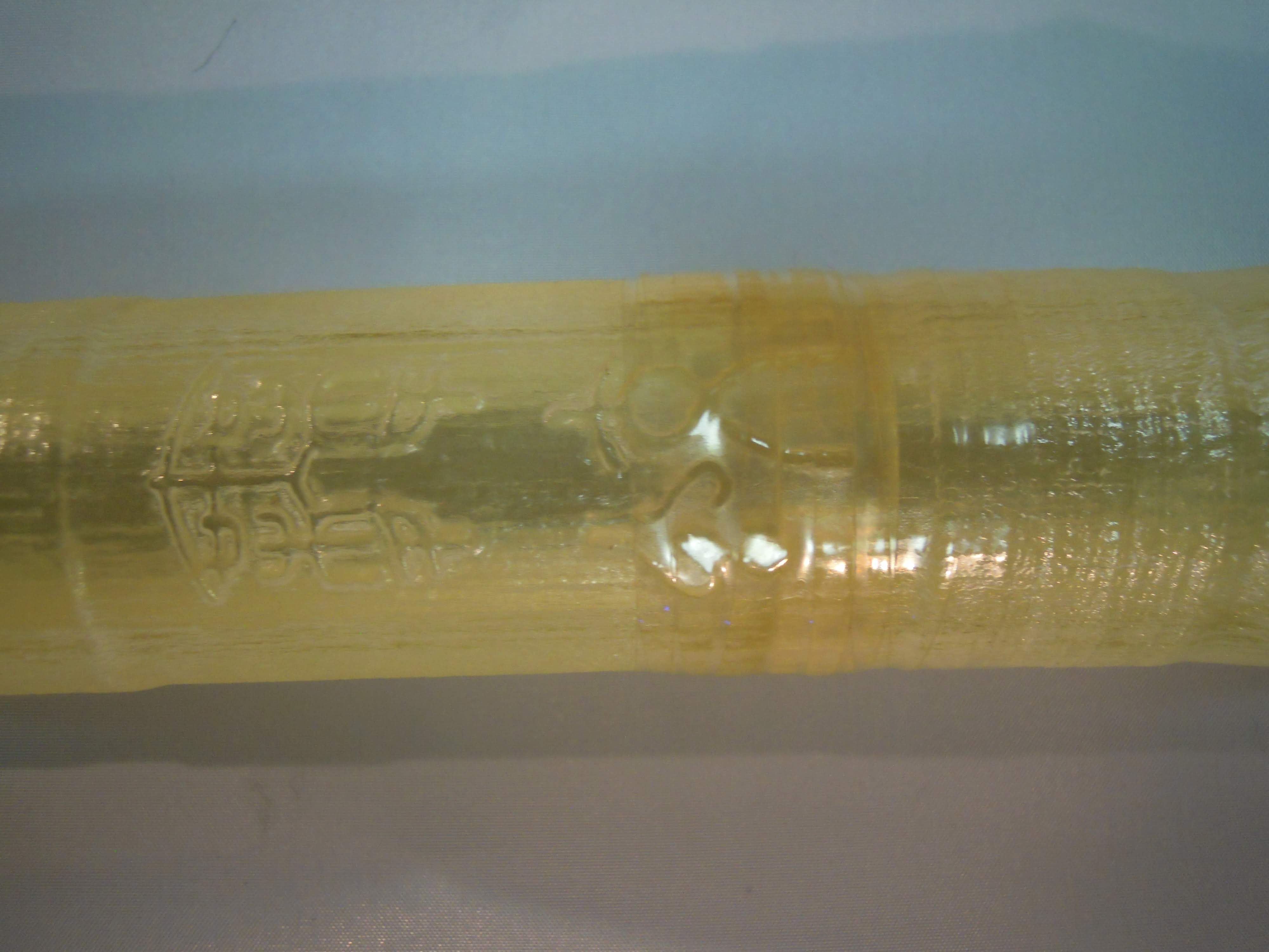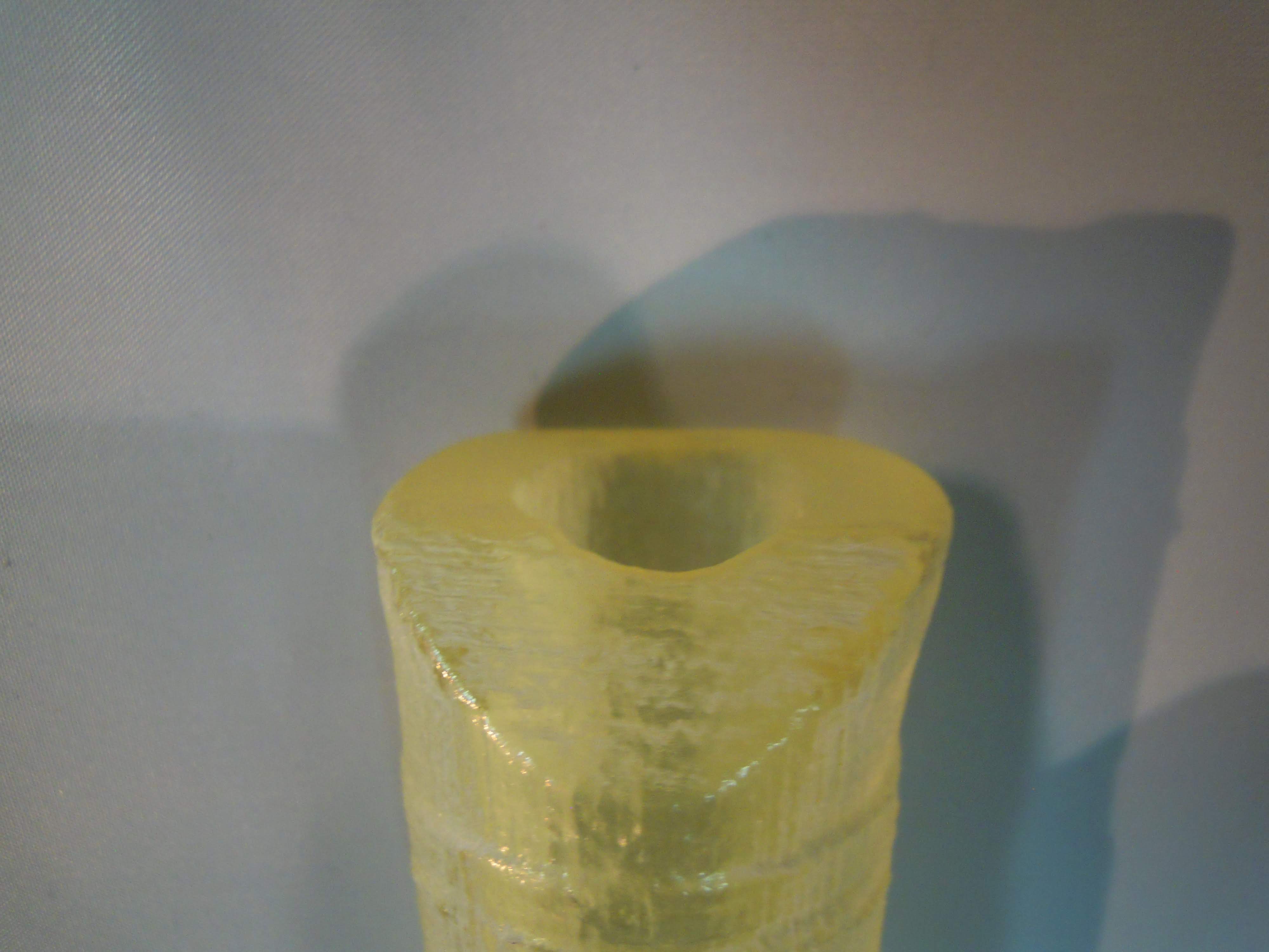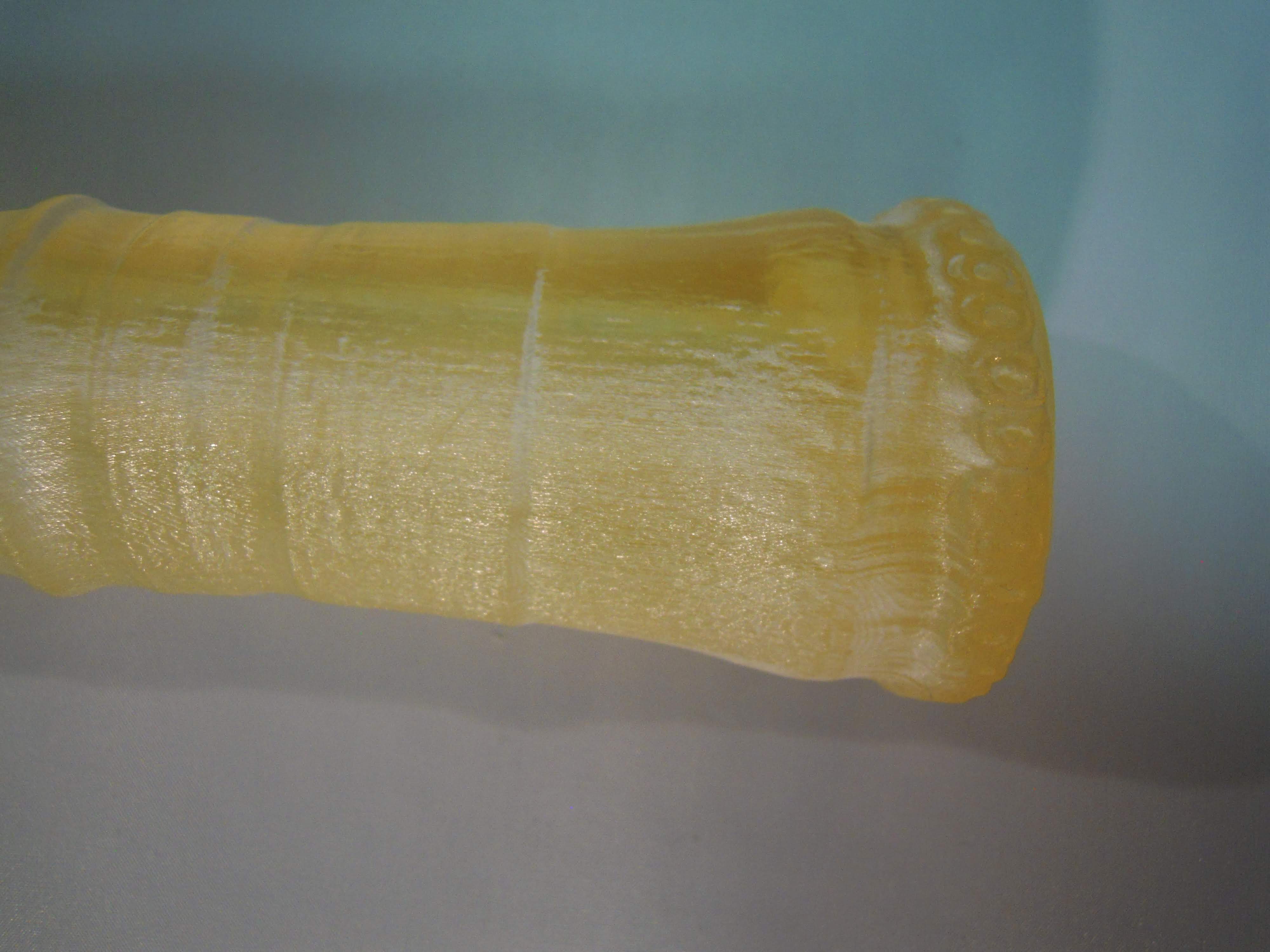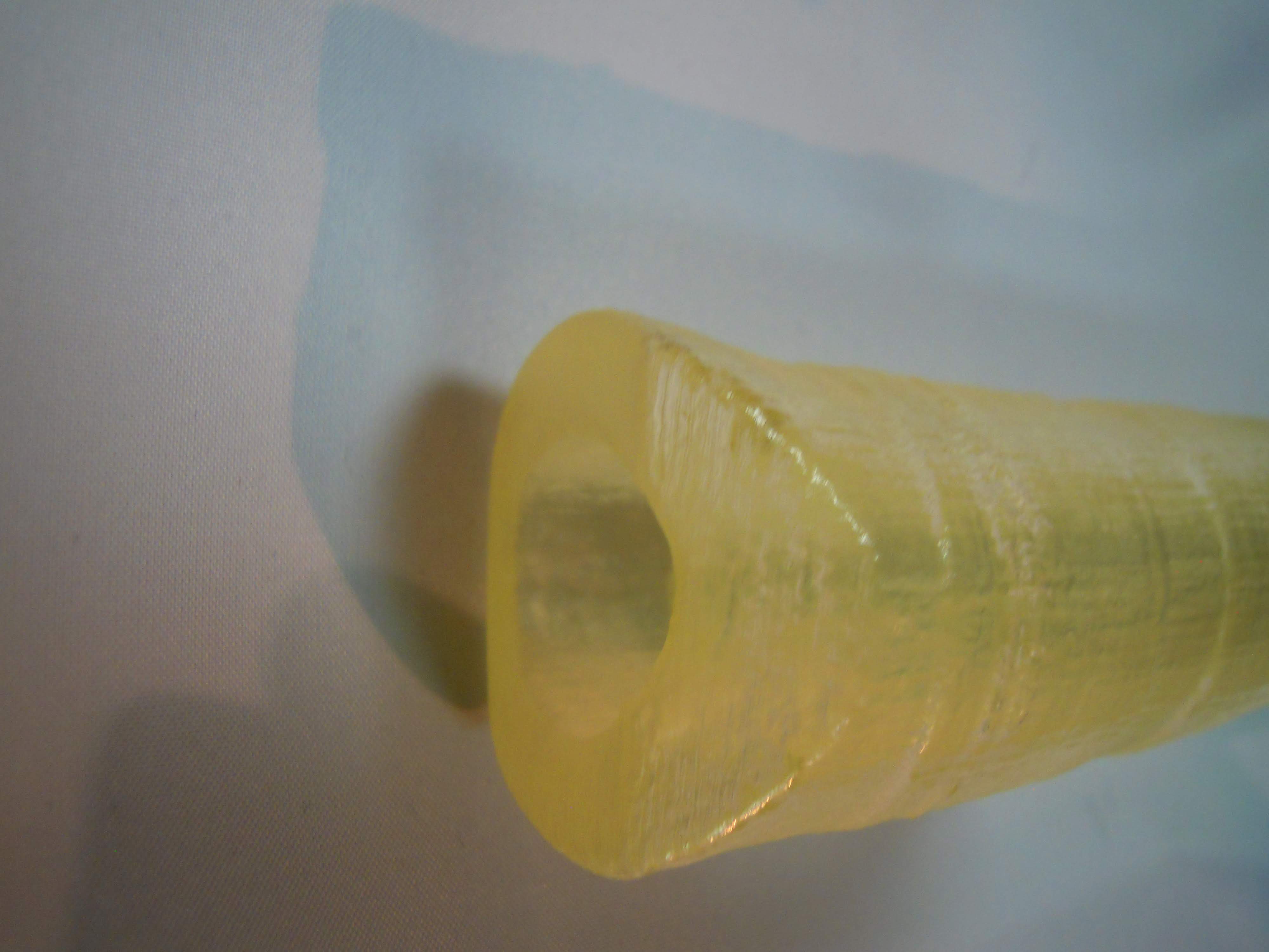 左から (1)「PJP方式 密度30%」(2)「PJP方式 密度50%」(3)「PJP方式 密度100%」(4)「インクジェット方式」(5)「PJP方式(管壁厚み1mmの中空構造)」(6)「FDM方式」
